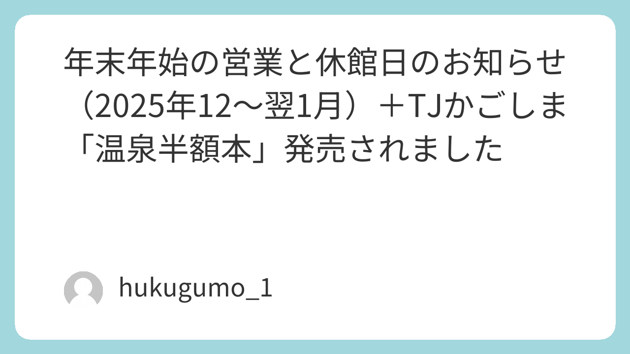 今年もTJかごしま「温泉半額本」が発売されました。鹿児島県内の色々な温泉の情報が載っています(温泉で使えるクーポンも付いています)ので、ぜひ手に取って読んでみてください。
